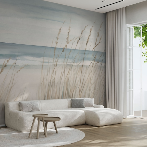 Vysoká, textúrovaná tráva pampas v jemných, teplých, neutrálnych odtieňoch, s rozmazaným, svetlým pozadím