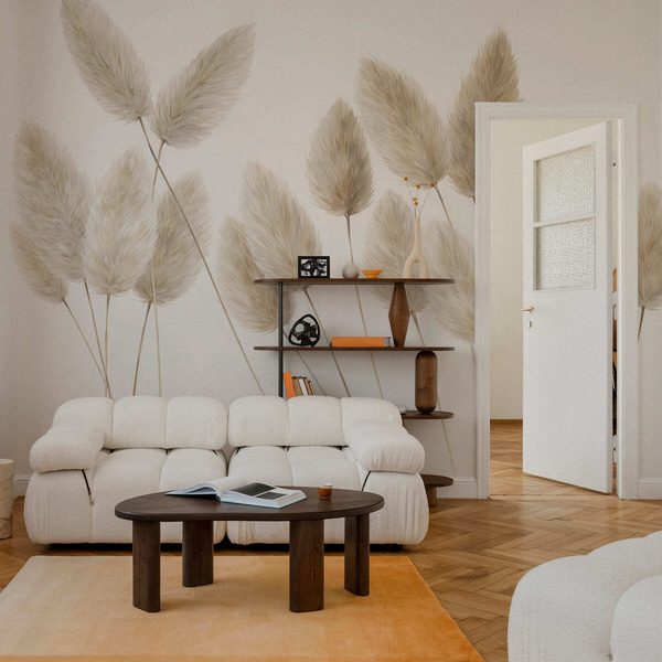 imitácia svetlých drevených panelov s rastlinnými vložkami