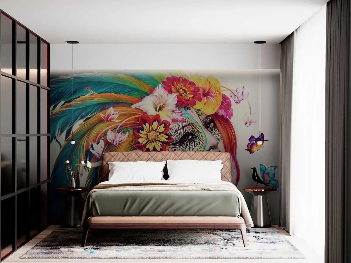 Fototapety Dievča s perím a kvetmi Nr. u46277