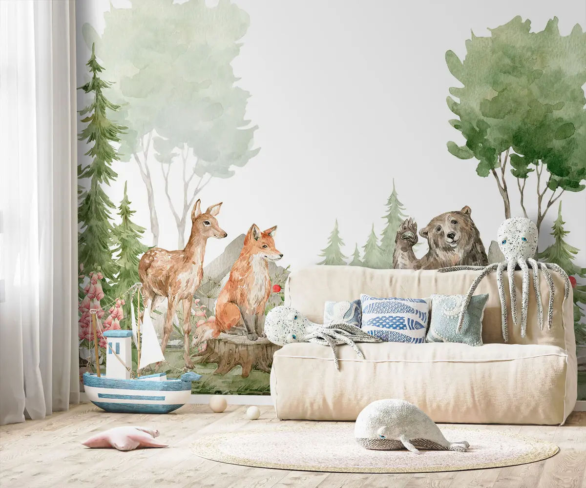 Fototapety Akvarelová kompozícia s lesnými zvieratami a prvkami prírody Nr. u78735