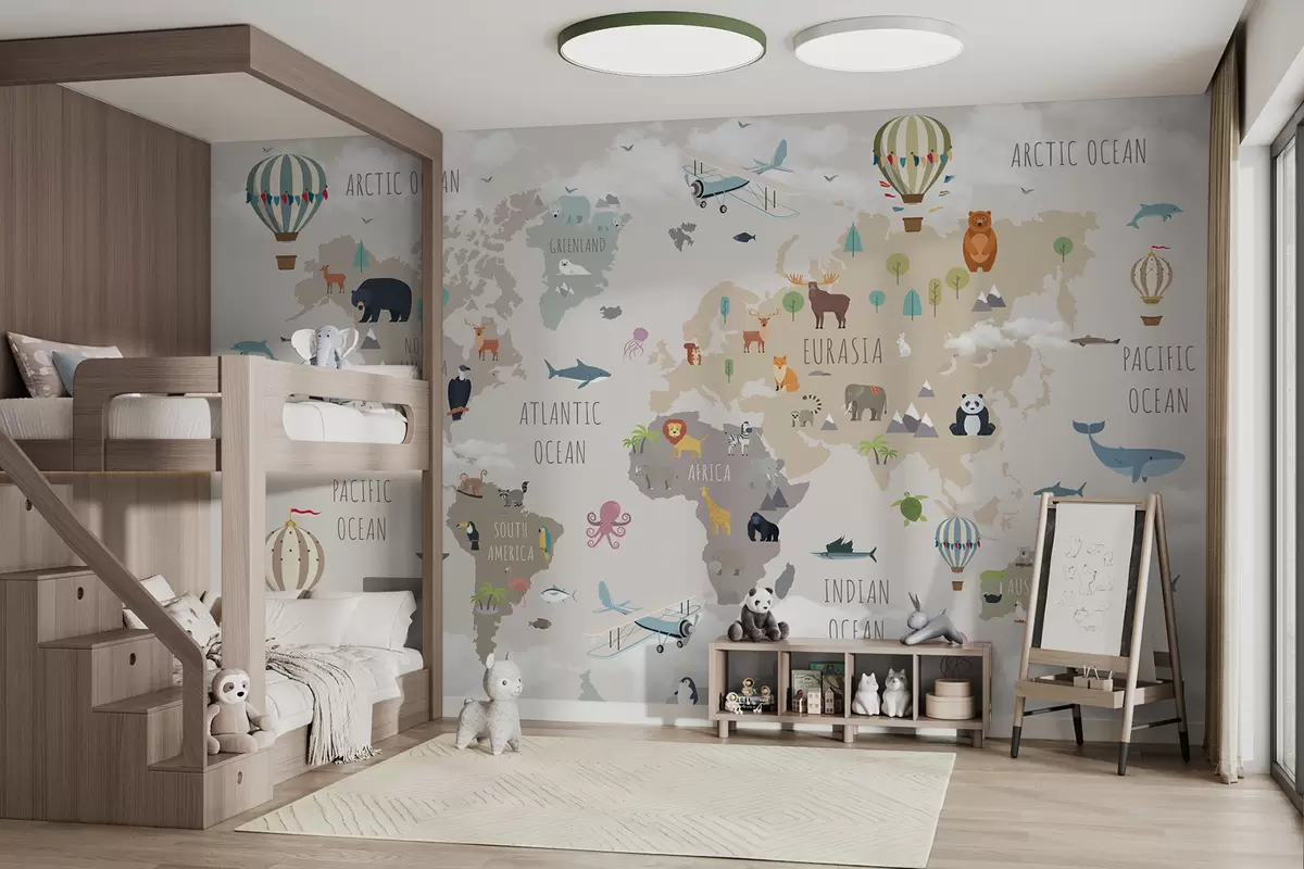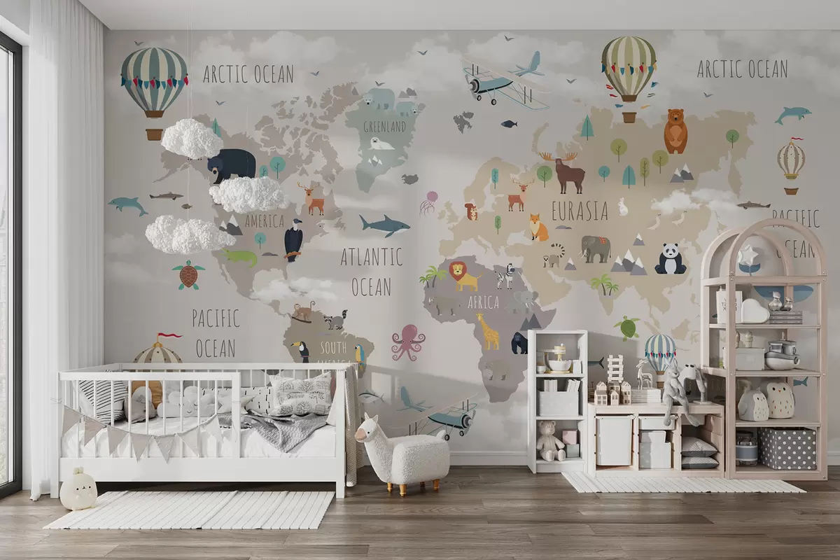 Fototapety Mapa sveta so zvieratami a balónikmi Nr. u96461