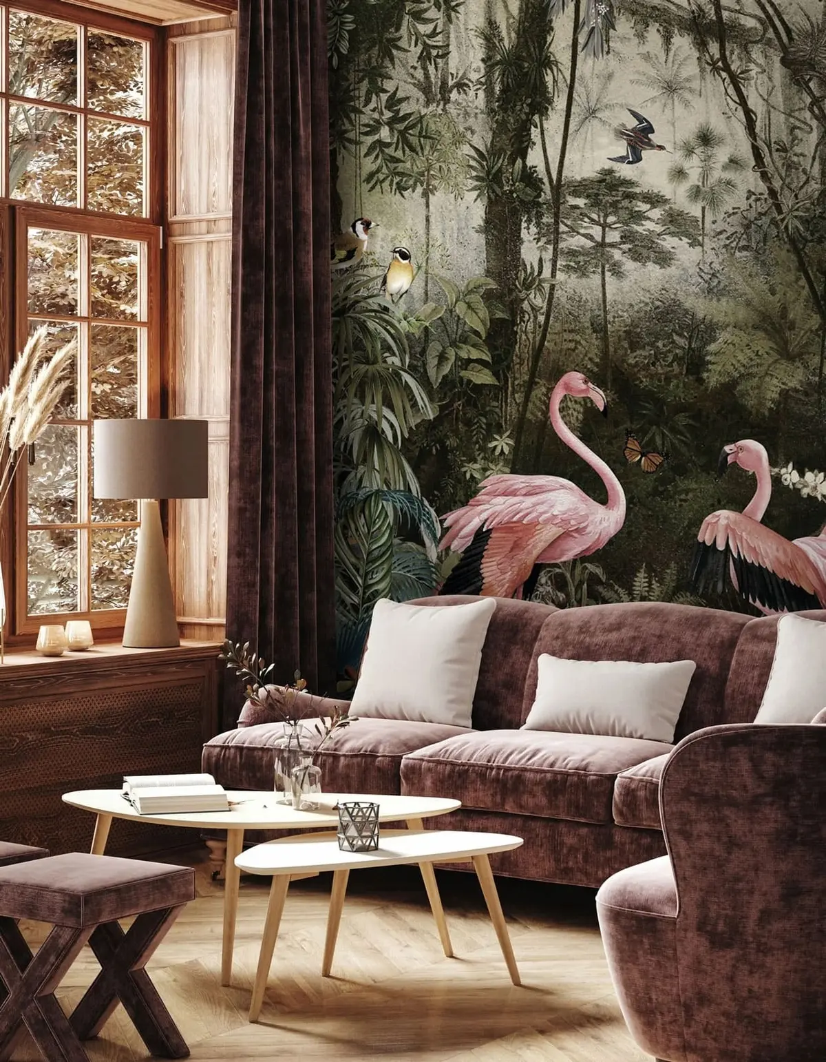Fototapety Tropické vtáky a plameniaky v džungli Nr. u73568