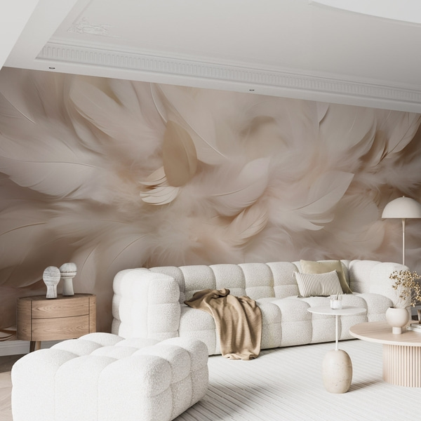Vzdušné pierka a okvetné lístky v krémovo ružových odtieňoch