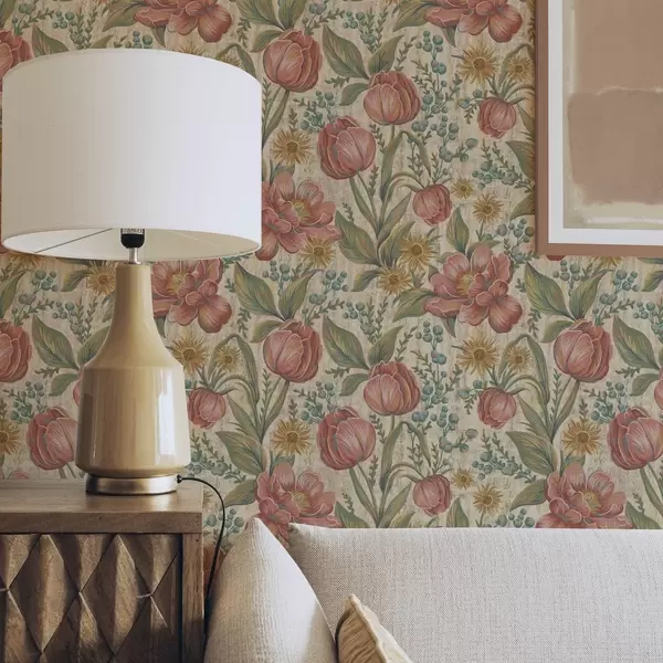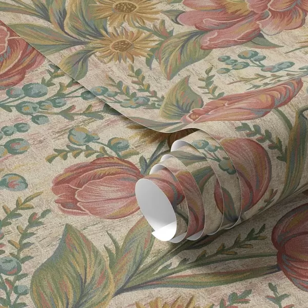 Tapeta Vintage tulipány a astry, textúrovaný krémový podklad Nr. a00773