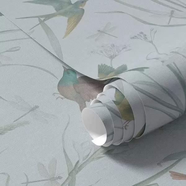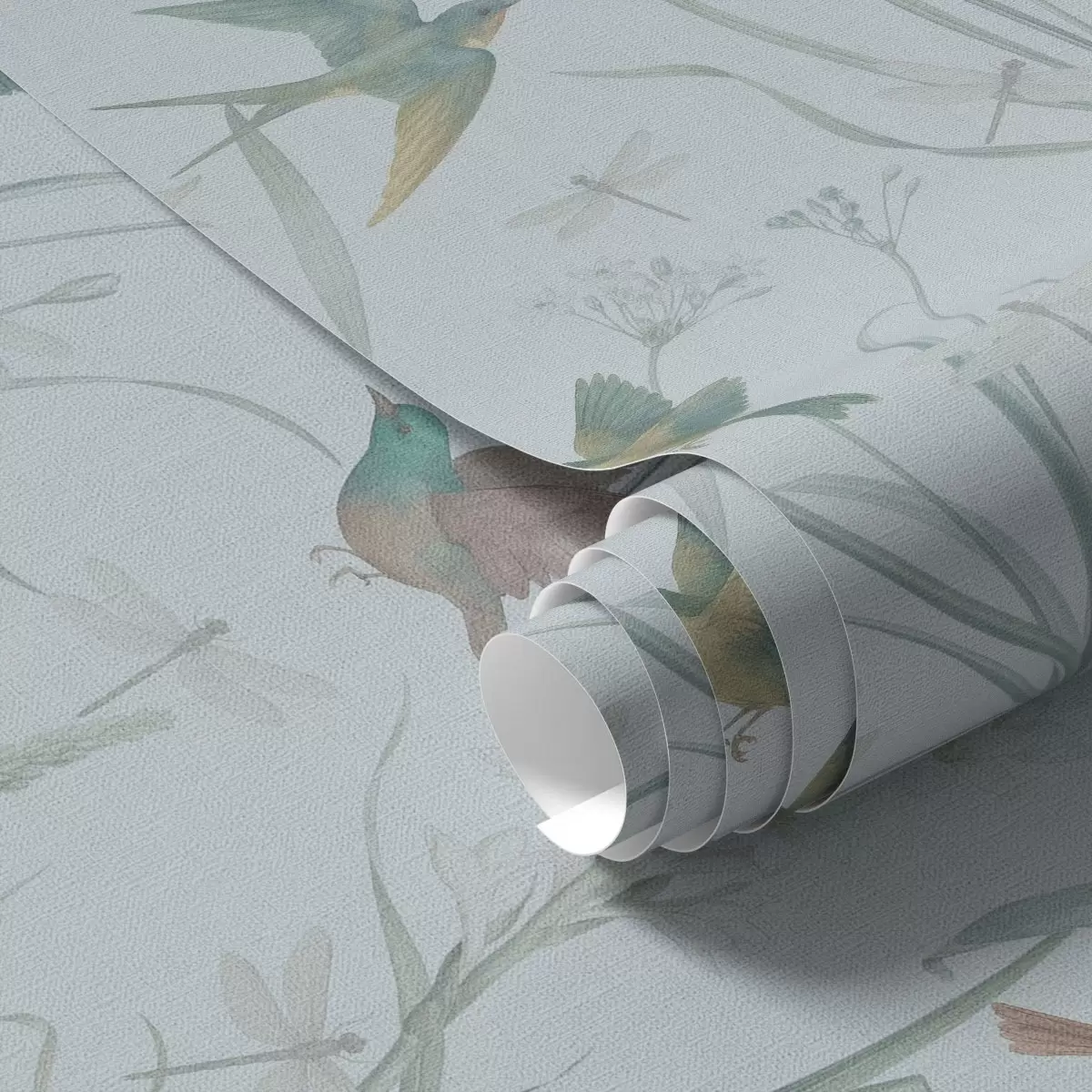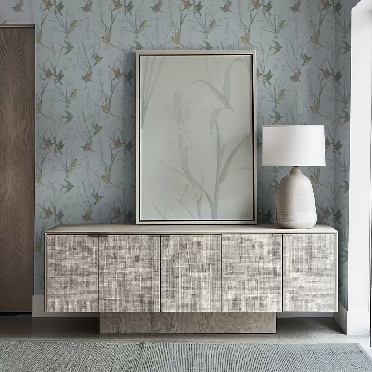 Tapeta Vtáky medzi lúkovými trávami na šedo-modrom pozadí Nr. a00776