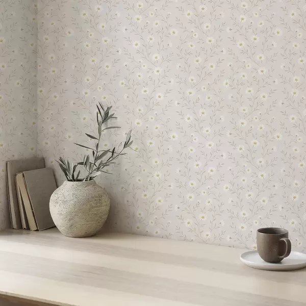 Tapeta Malé sedmokrásky na vetvičkách, teplá béžová farba Nr. a00777