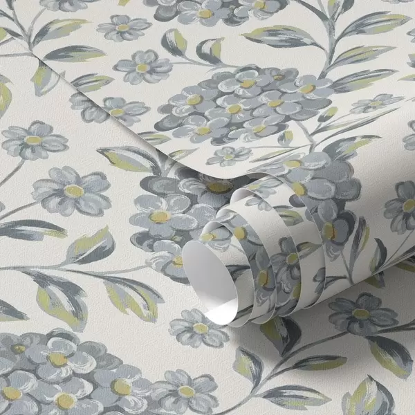 Tapeta Kvetiny a listy v sivomodrej farebnej palete Nr. a00778