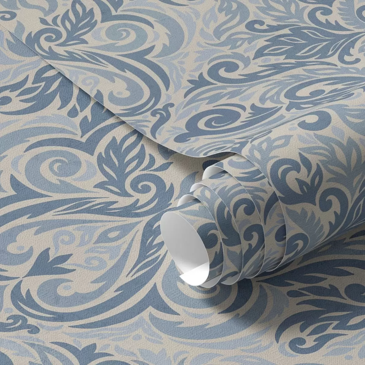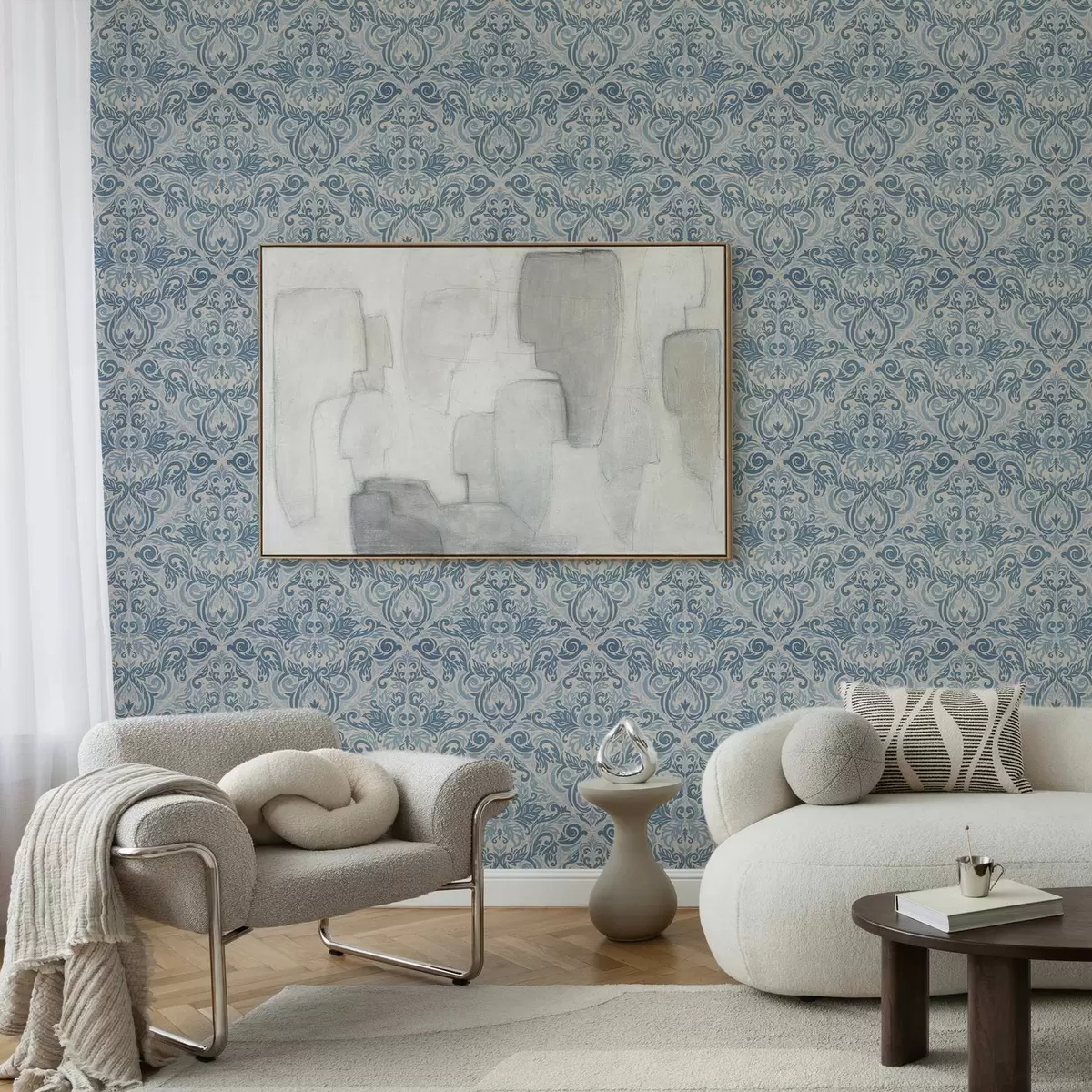 Tapeta Klasický damašek, modré motívy na smotanovej farbe Nr. a00826v1