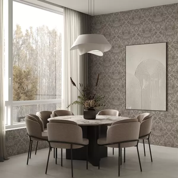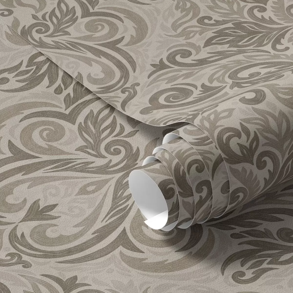 Tapety Damašek v teplých šedo-hnedých odtieňoch na svetlom podklade a00826v3
