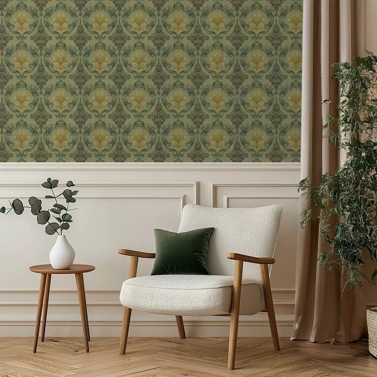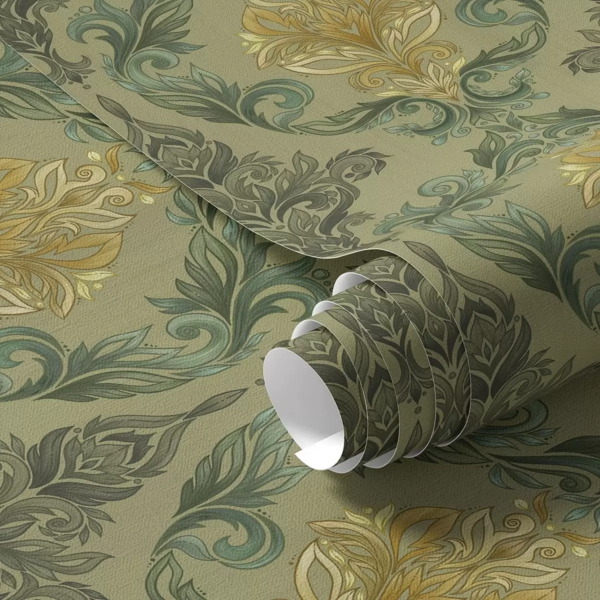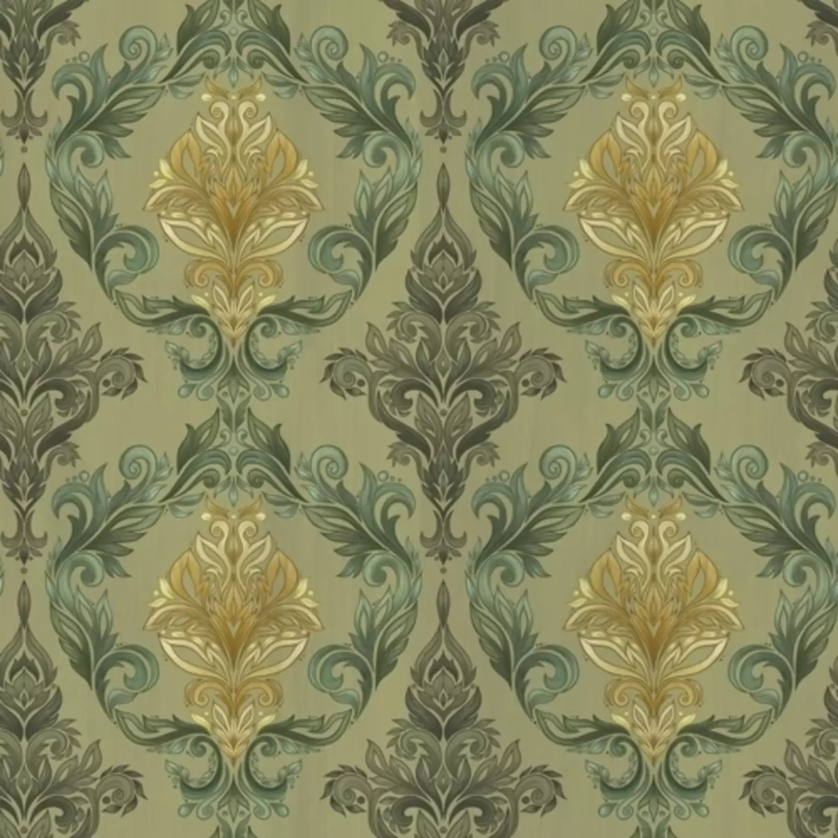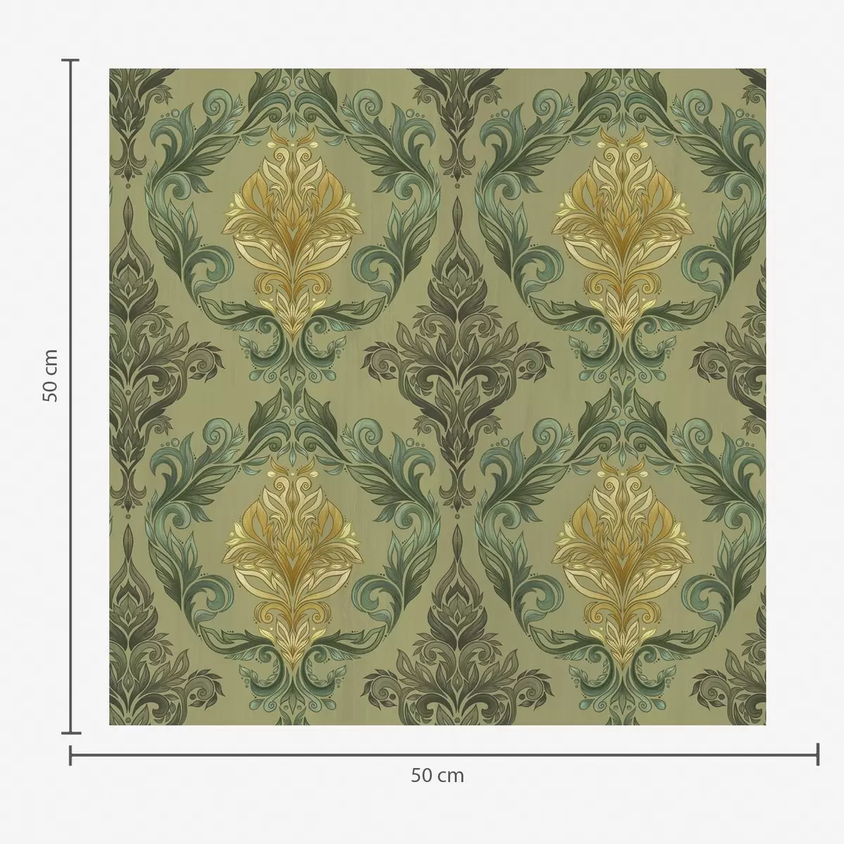 Fototapety Damašek s rastlinnými ornamentmi, olivovo-okrová farebná paleta Nr. a00828