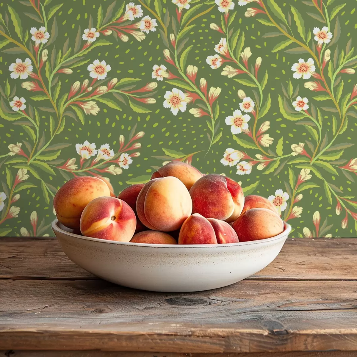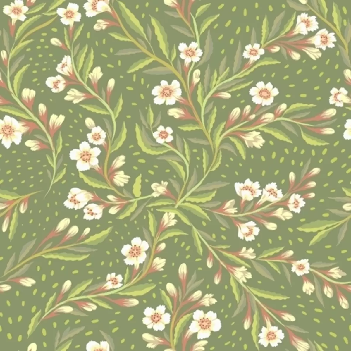 Fototapety Rozsiahle vetvy s krémovými kvetmi na olivovom pozadí Nr. a00850