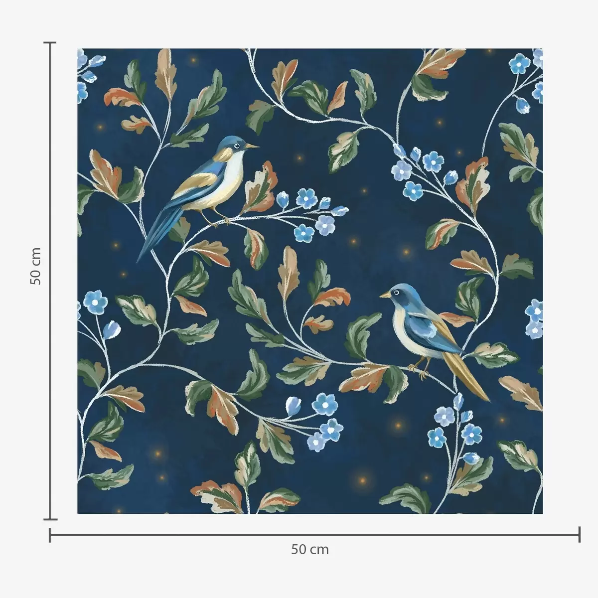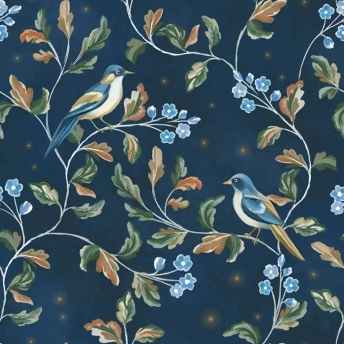 Fototapety Prsia na vetvách, nočné modré pozadie s iskrami Nr. a00858