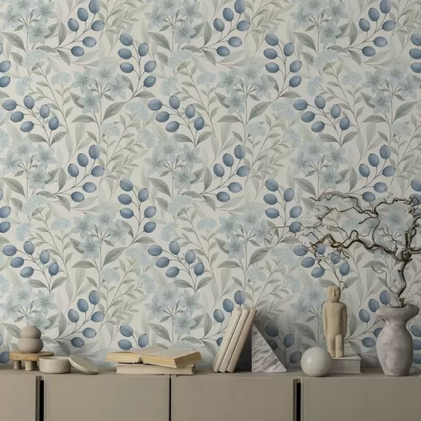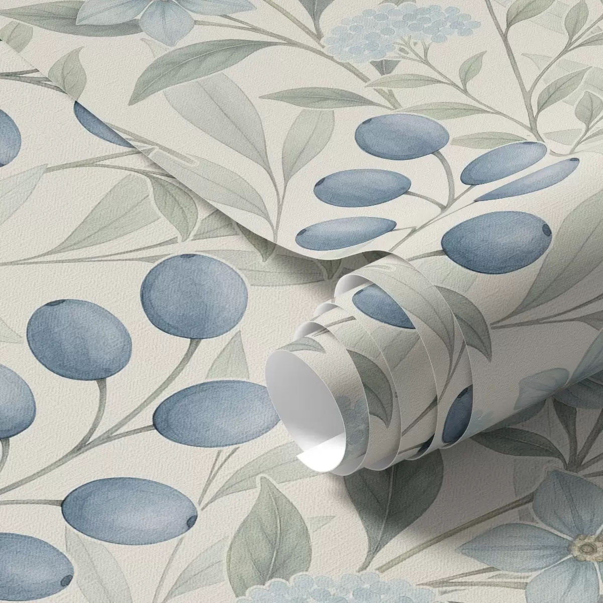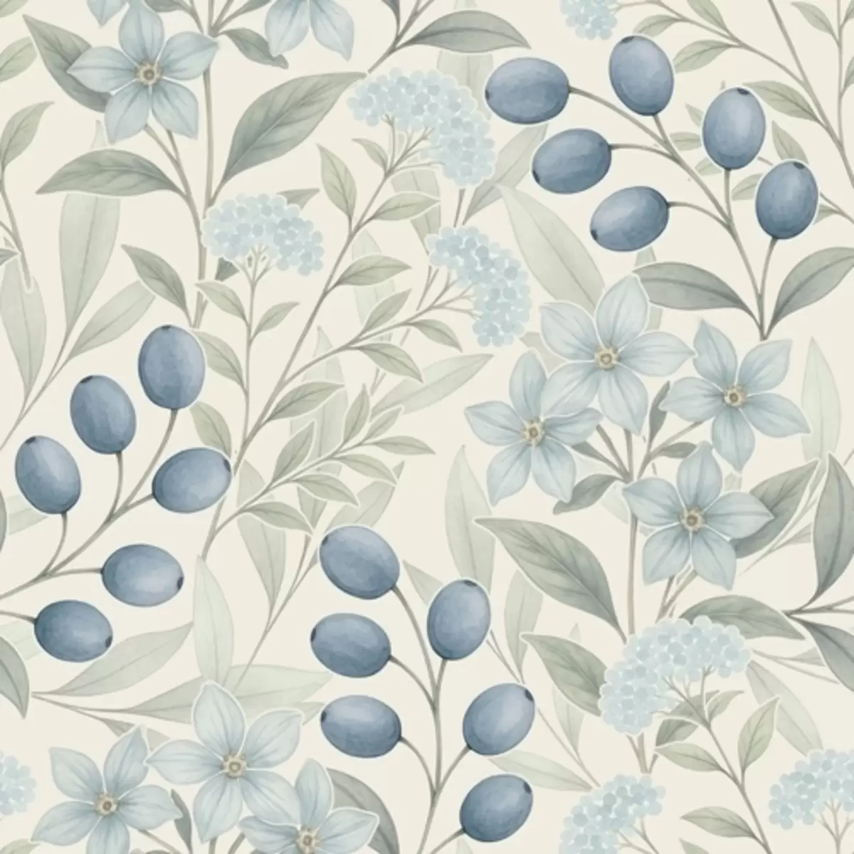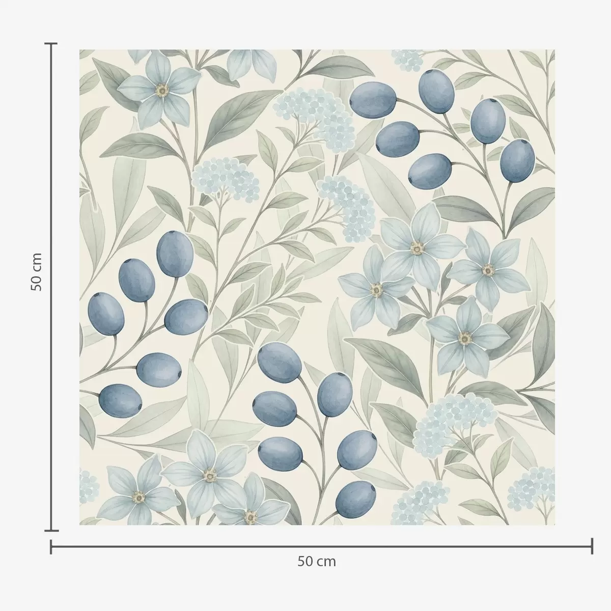 Fototapety Modré bobule a svetlé kvety na slonovinovej farbe Nr. a00872