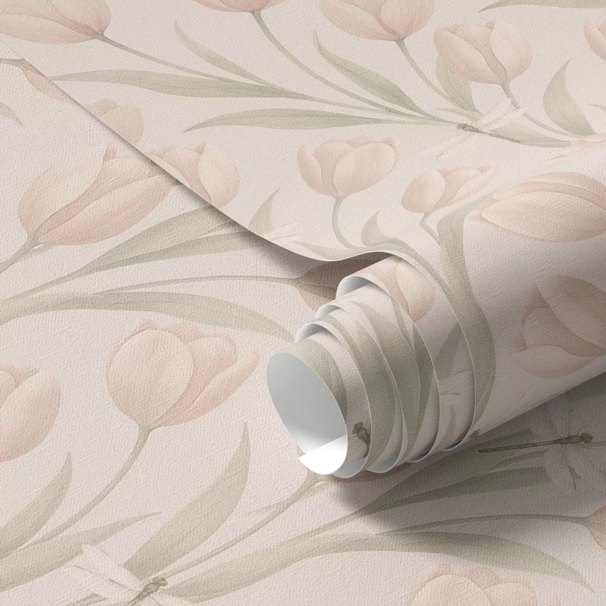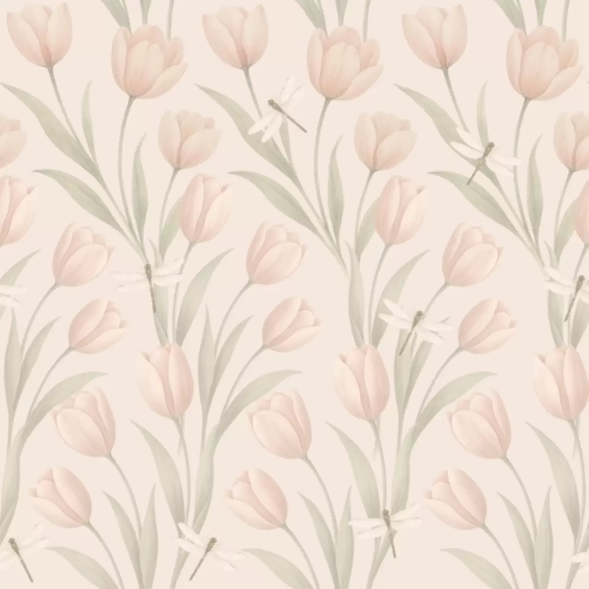 Fototapety Pastelové tulipány s vážkami na ružovom pozadí Nr. a00876