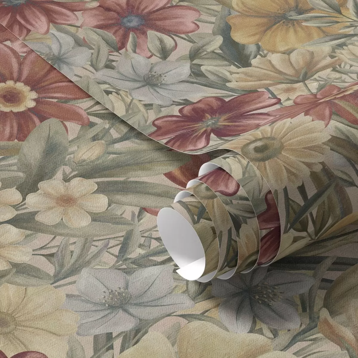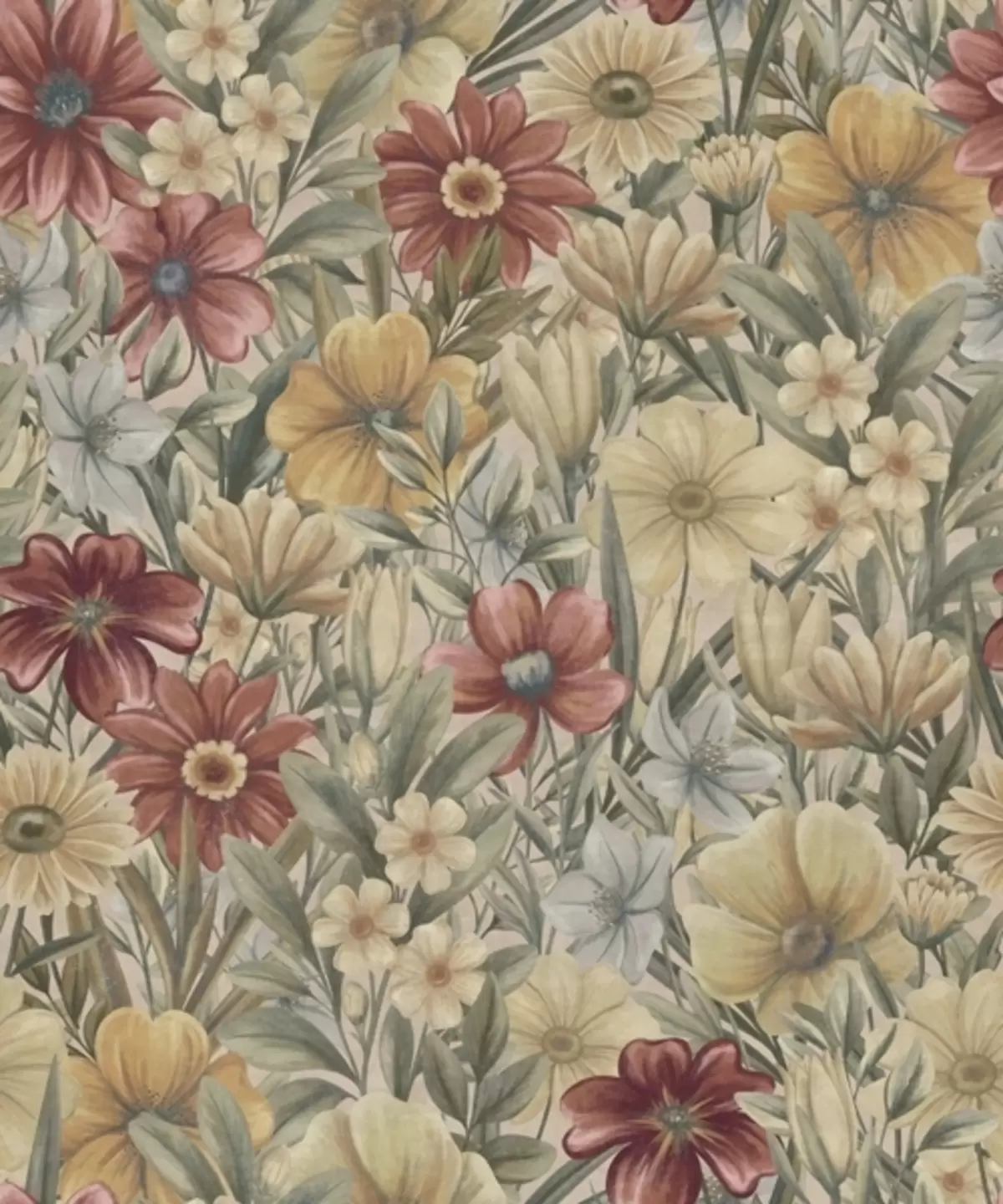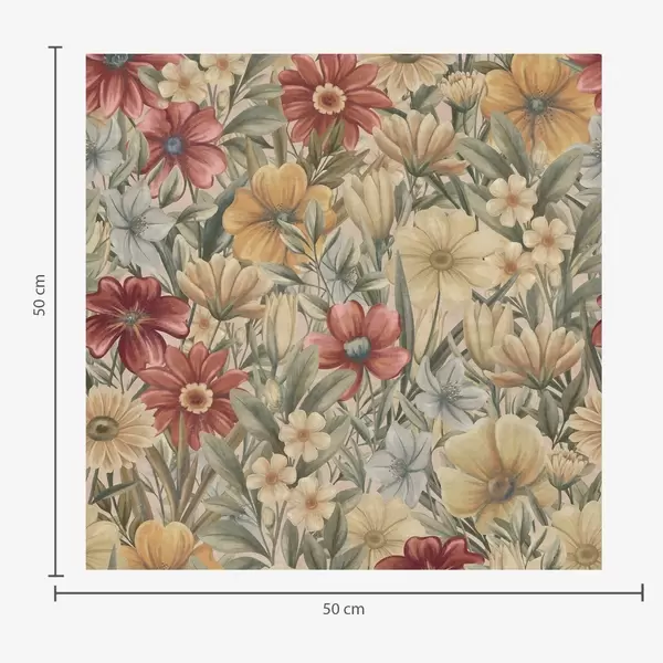 Fototapety Vintage lúka kvitne v teplých odtieňoch žltej, červenej a šalvie Nr. a00906