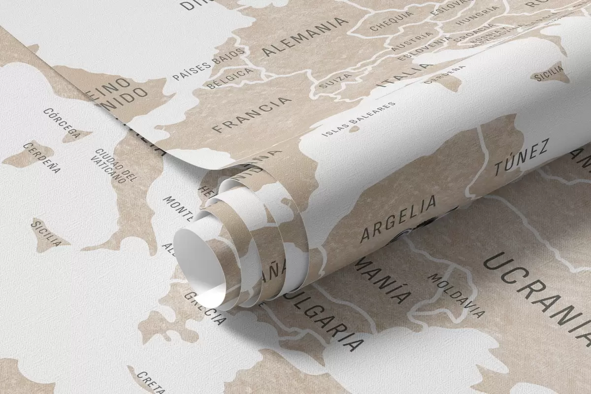Fototapety Detská mapa v akvarelovom štýle so zvieratkami a teplovzdušnými balónmi. Španielsky jazyk. Béžová farba. Nr. c00001esv2