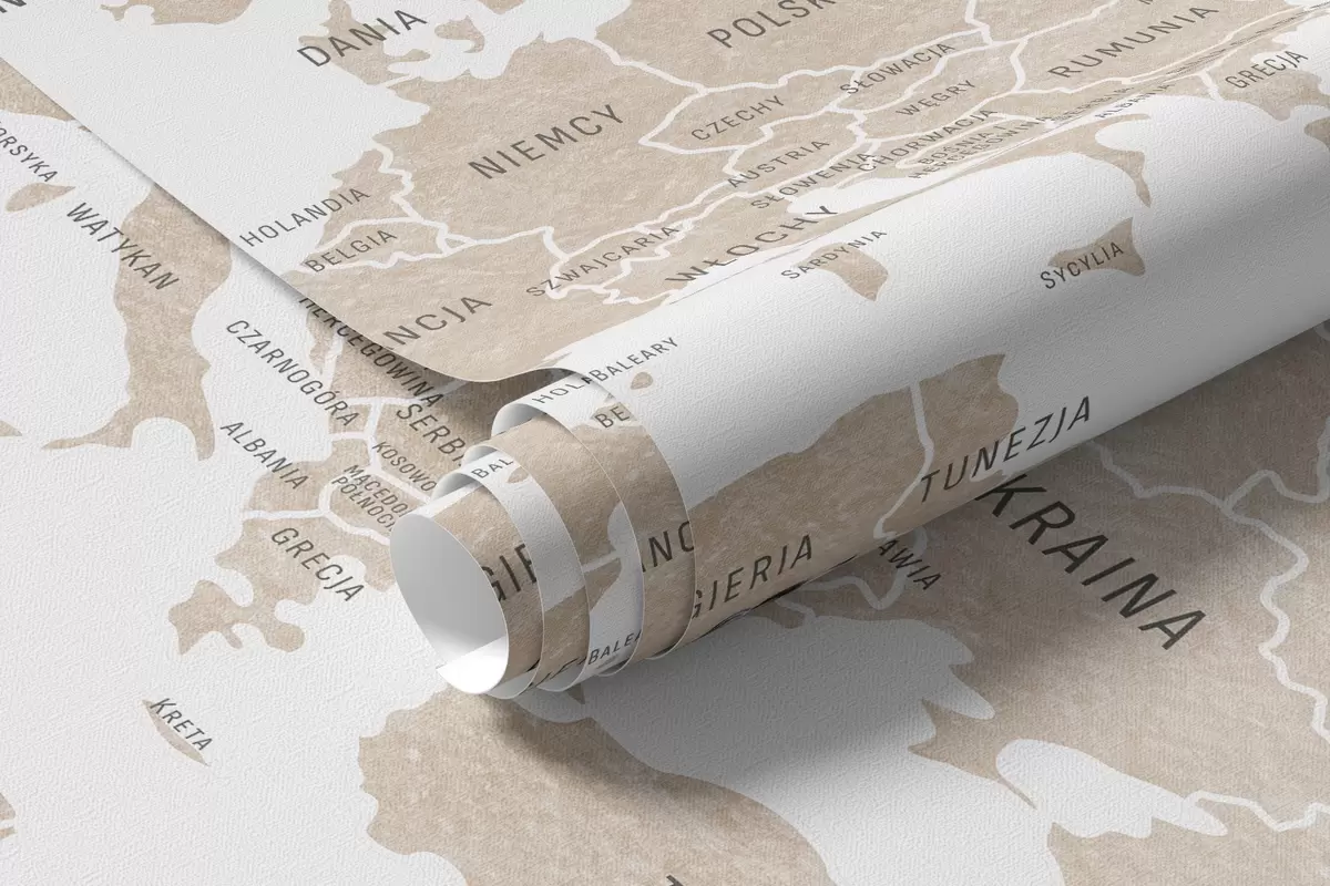 Fototapety Detská mapa v akvarelovom štýle so zvieratkami a teplovzdušnými balónmi. Poľský jazyk. Béžová farba. Nr. c00001plv2