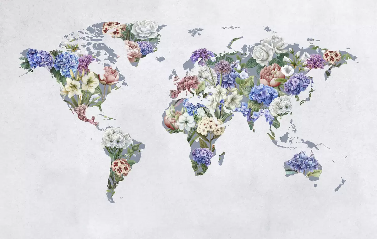 Fototapety Farebná mapa sveta vytvorená z rôznych pestrých kvetov Nr. c00006