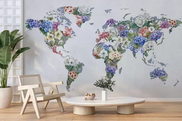 Fototapety Farebná mapa sveta vytvorená z rôznych pestrých kvetov Nr. c00006