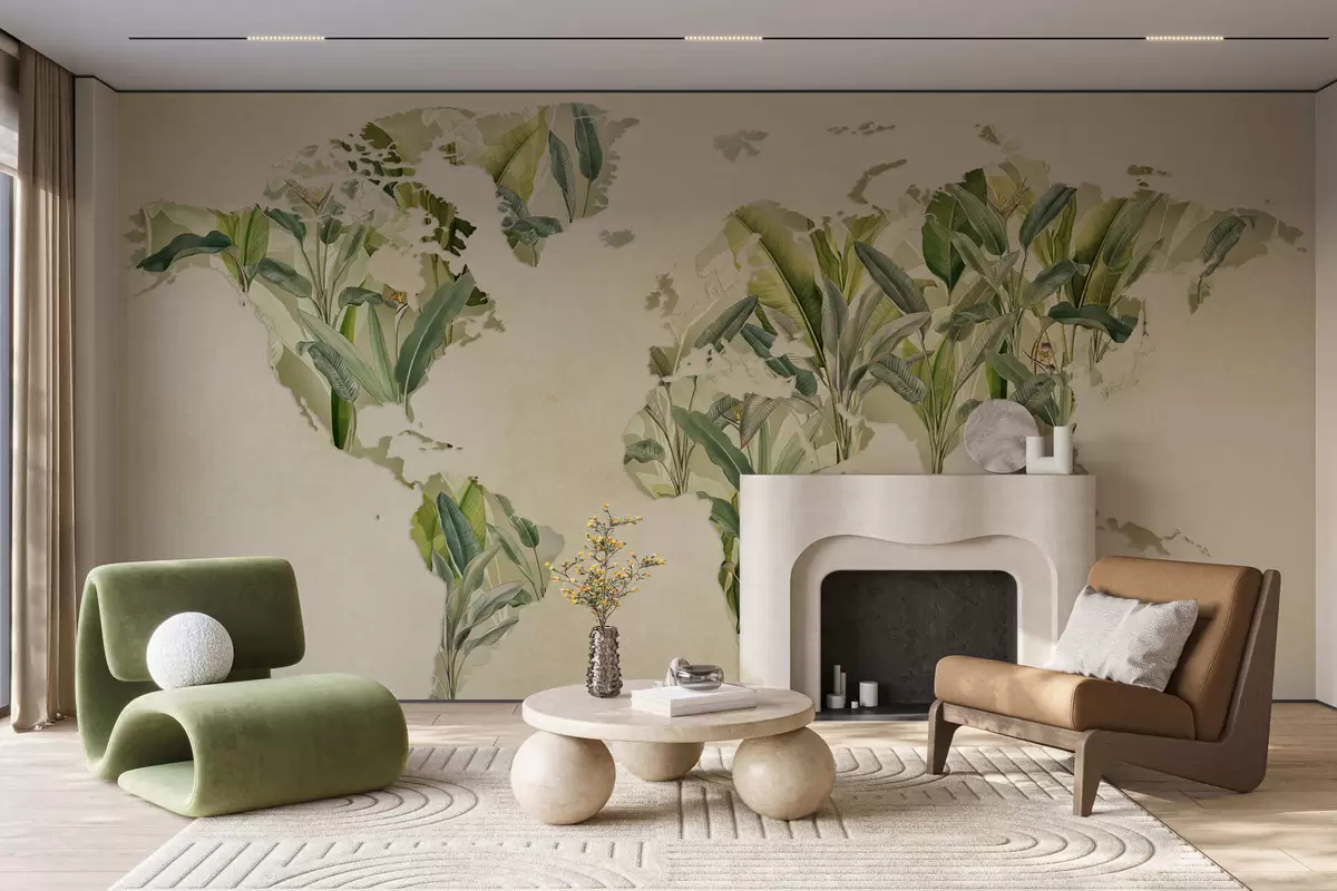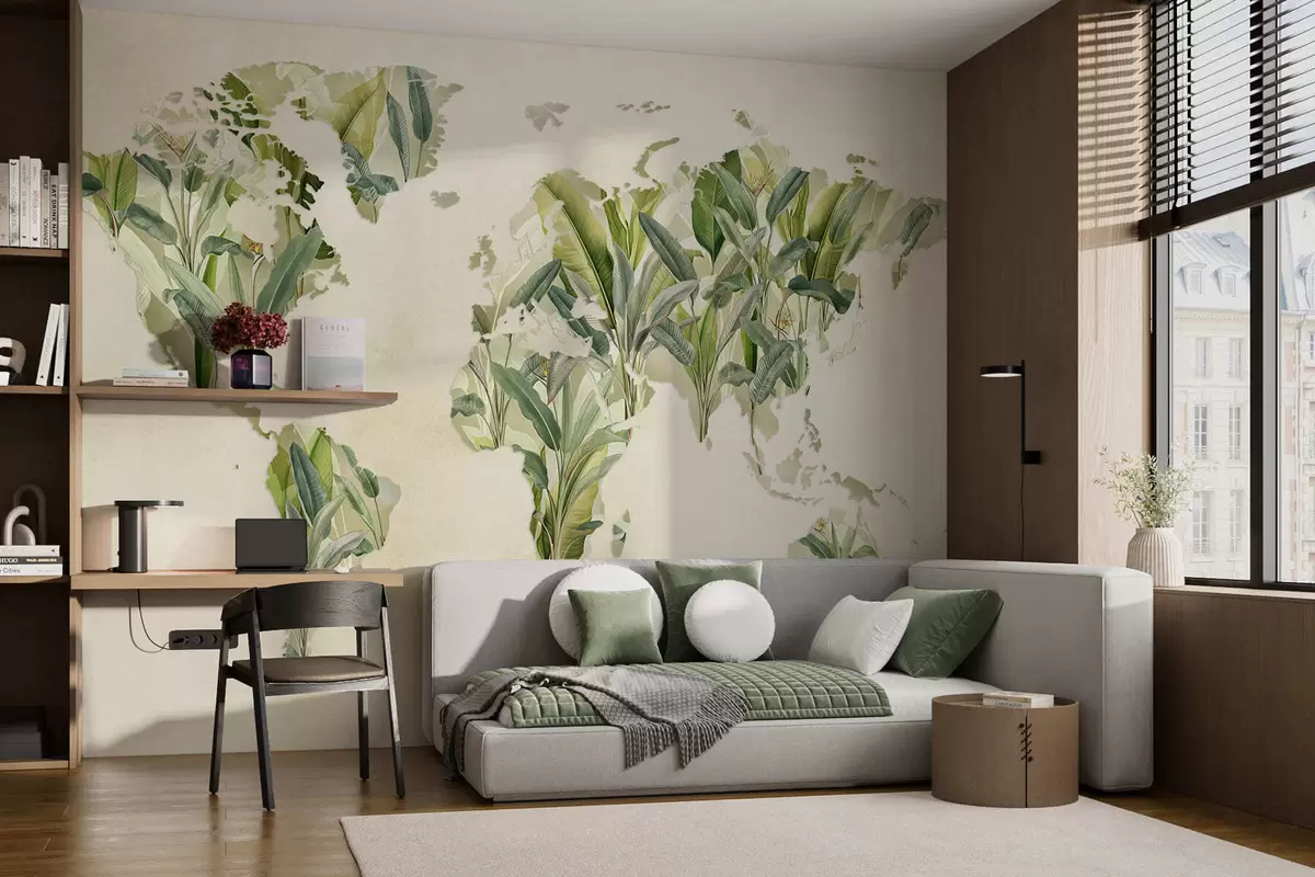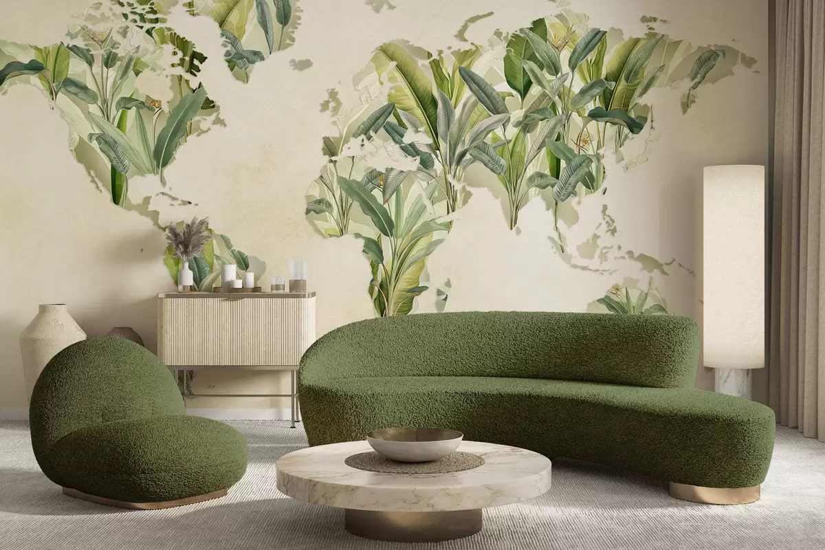 Fototapety Zelená mapa sveta vyrobená z banánových listov Nr. c00007