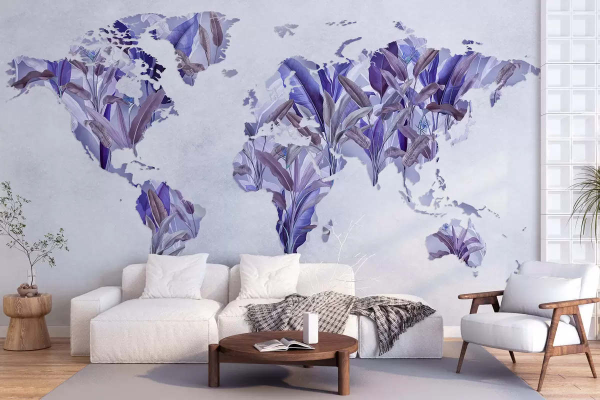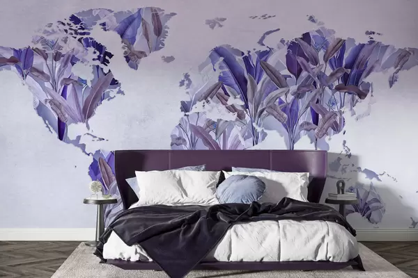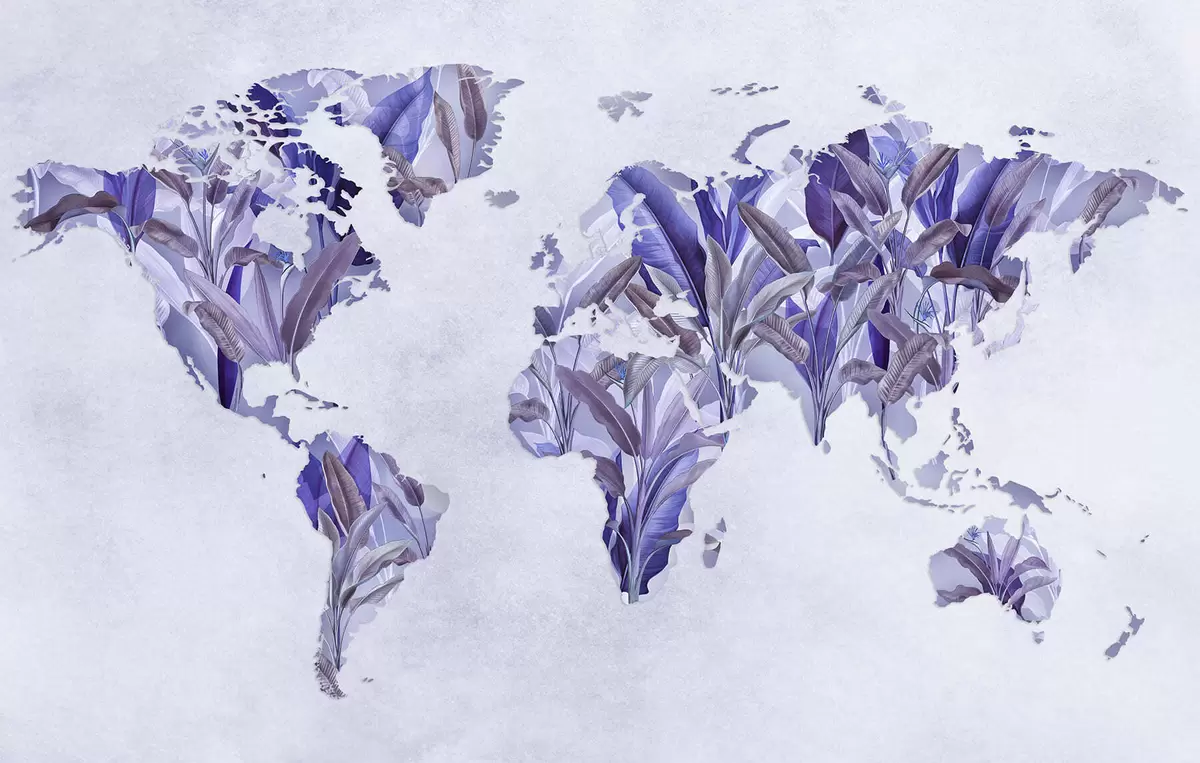 Fototapety Fialová mapa sveta vyrobená z banánových listov Nr. c00007v1