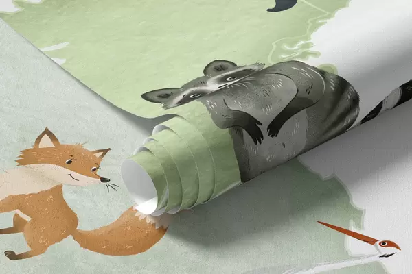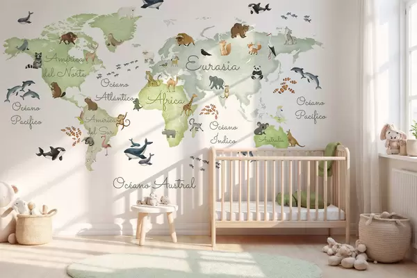 Fototapety Zelená mapa v akvarelovom štýle so zvieratami. Názvy v španielčine Nr. c00012esv2