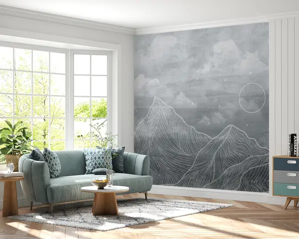 Fototapety Grunge textúra s mrakmi a horami, šedá farba, prírodná téma Nr. u98838v1