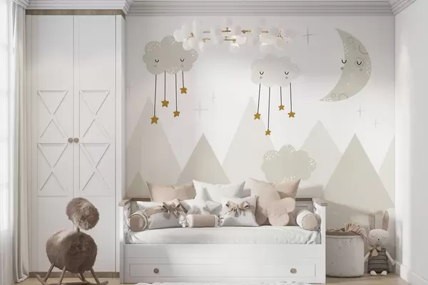 Fototapety Hory, mraky a mesiac v škandinávskom štýle Nr. u98920
