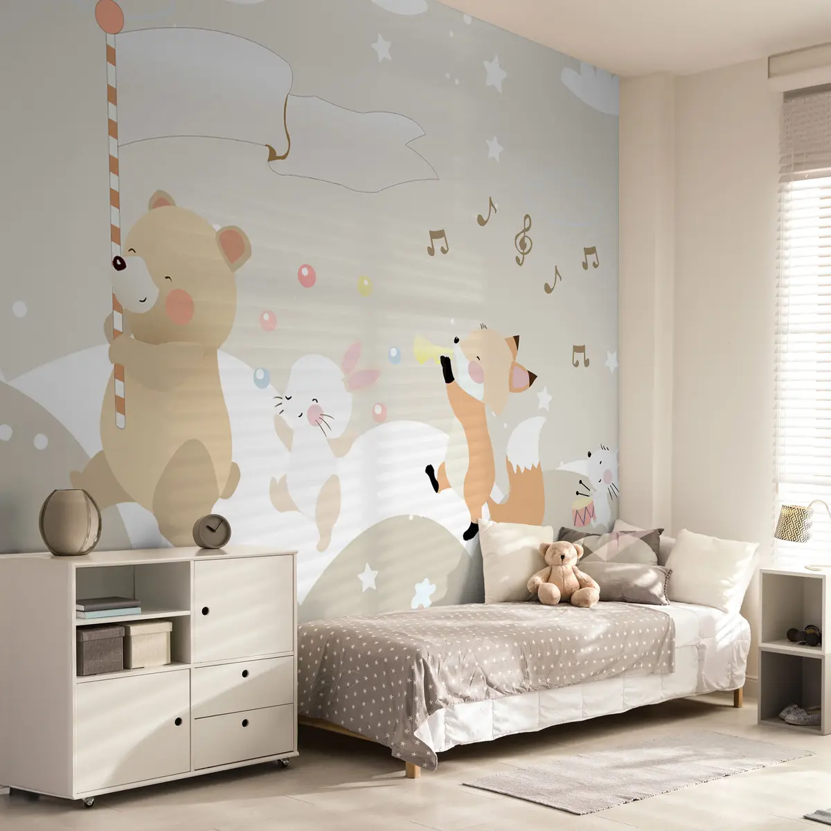 Fototapety Dizajn tapety pre detskú izbu s roztomilými zvieratkami v ružových farbách Nr. u98969