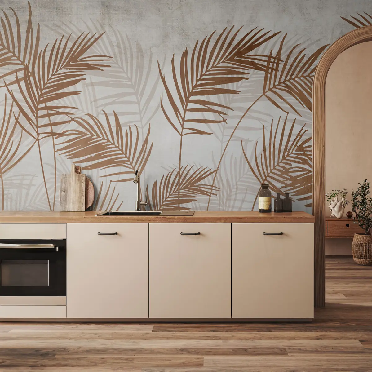 Fototapety Dizajn tapety s tropickými stromami a listami v hmlistom lese Nr. u98974