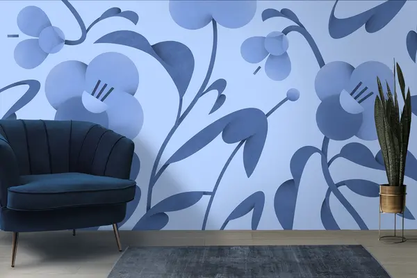 Fototapety Botanická potlač s ozdobnými kvetmi v modrej farbe Nr. u99196v8