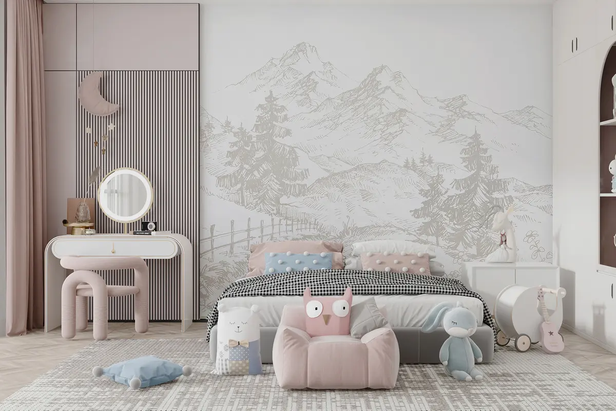 Fototapety Krajina hôr, kresba línií, stromy, minimalizmus, béžové farby Nr. u99572