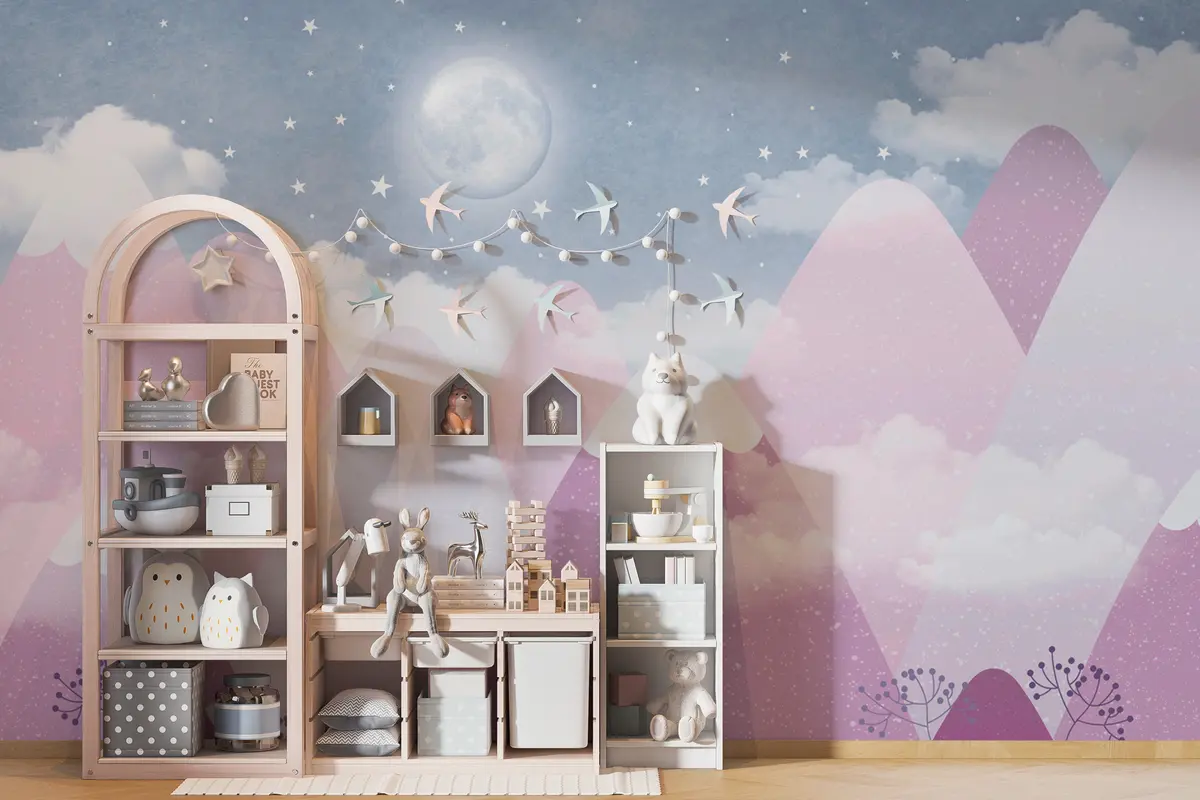 Fototapety Mesiac nad zasneženými horami detská ilustrácia v modrej farbe Nr. w00374v1