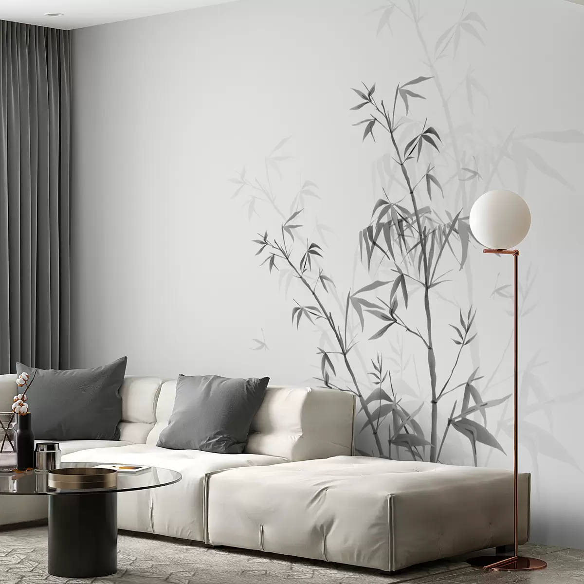 Fototapety Minimalistický štýl Japandi rastlinný bambus Chinoiserie sivej farby Nr. w00546v1