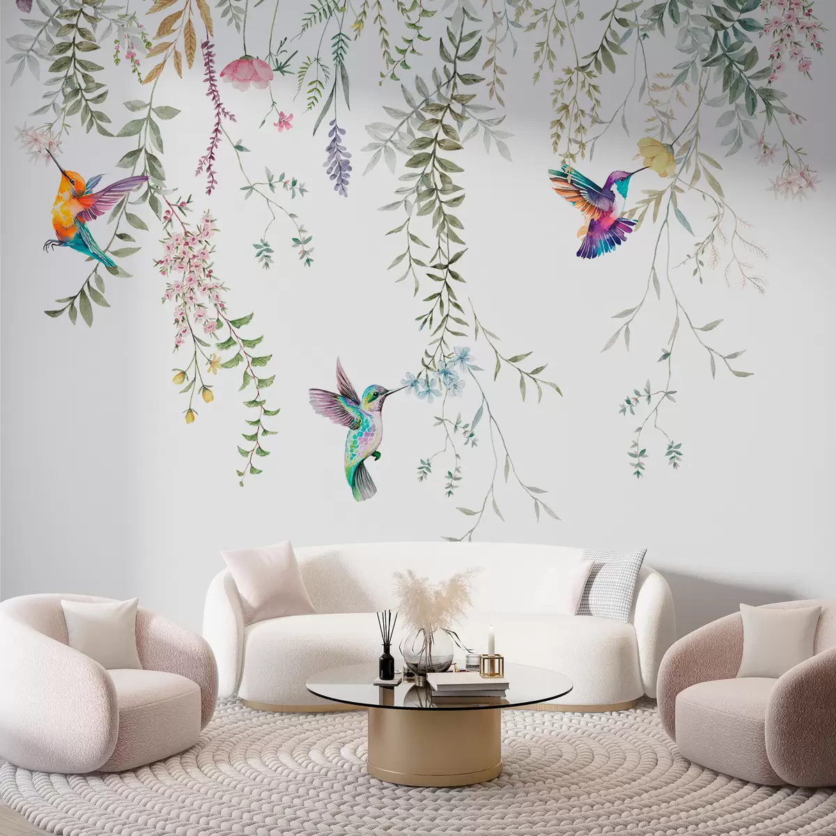 Fototapety Závesné kvety a listy a krásne kolibríky Nr. w00660