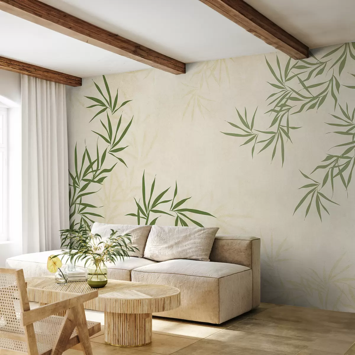 Fototapety Rastlinné vetvičky, bambus, vintage štýl, textúra pozadia, žltá, zelená farba Nr. w00817