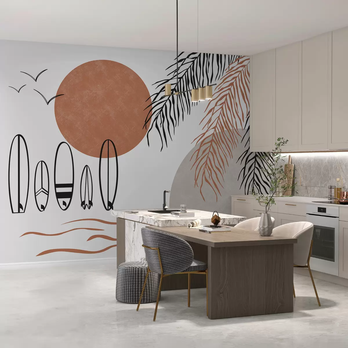 Fototapety Surfy, perokresba palmových ratolestí, čierna a červená farba Nr. w00958