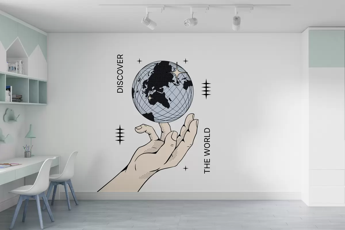 Fototapety Béžová ruka otáčajúca zemeguľu na bielom pozadí na dekoráciu miestnosti alebo kancelárie Nr. w00984