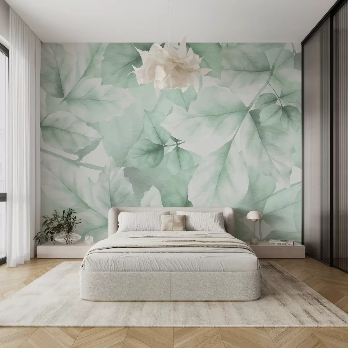 Fototapety Texturované tapety s veľkými listami v pastelových odtieňoch zelenej Nr. w01090v3
