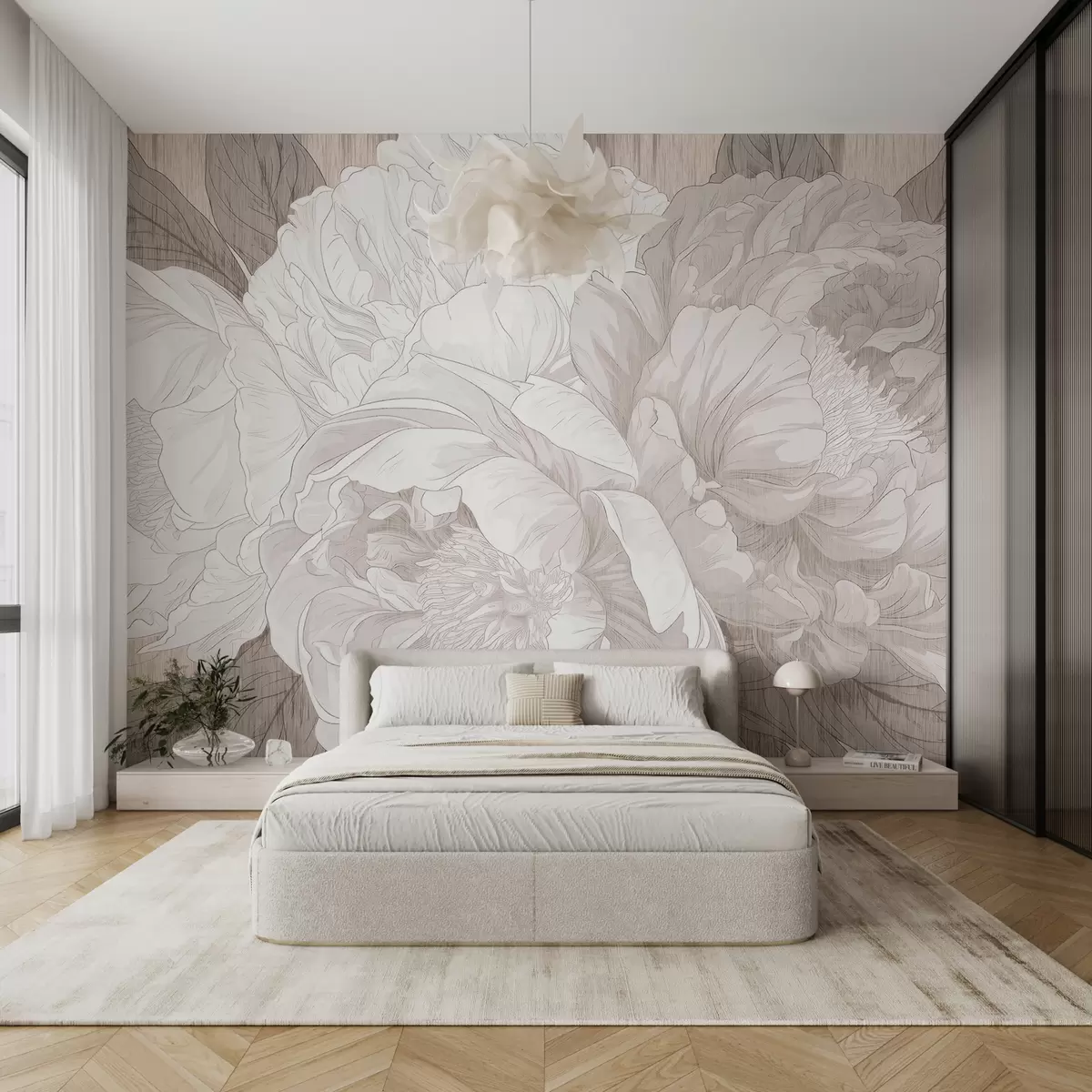 Fototapety Textúrované veľké kvety pivónie v béžových odtieňoch Nr. w01141