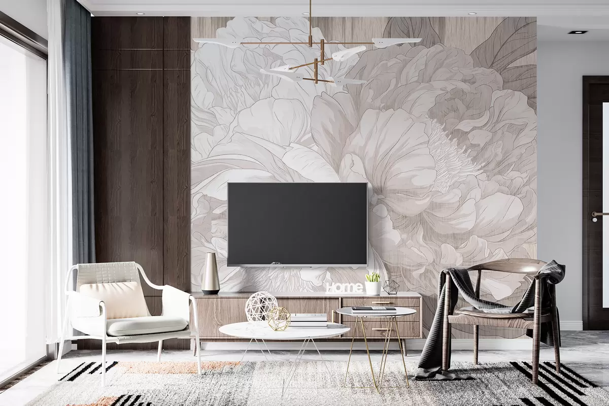 Fototapety Textúrované veľké kvety pivónie v béžových odtieňoch Nr. w01141