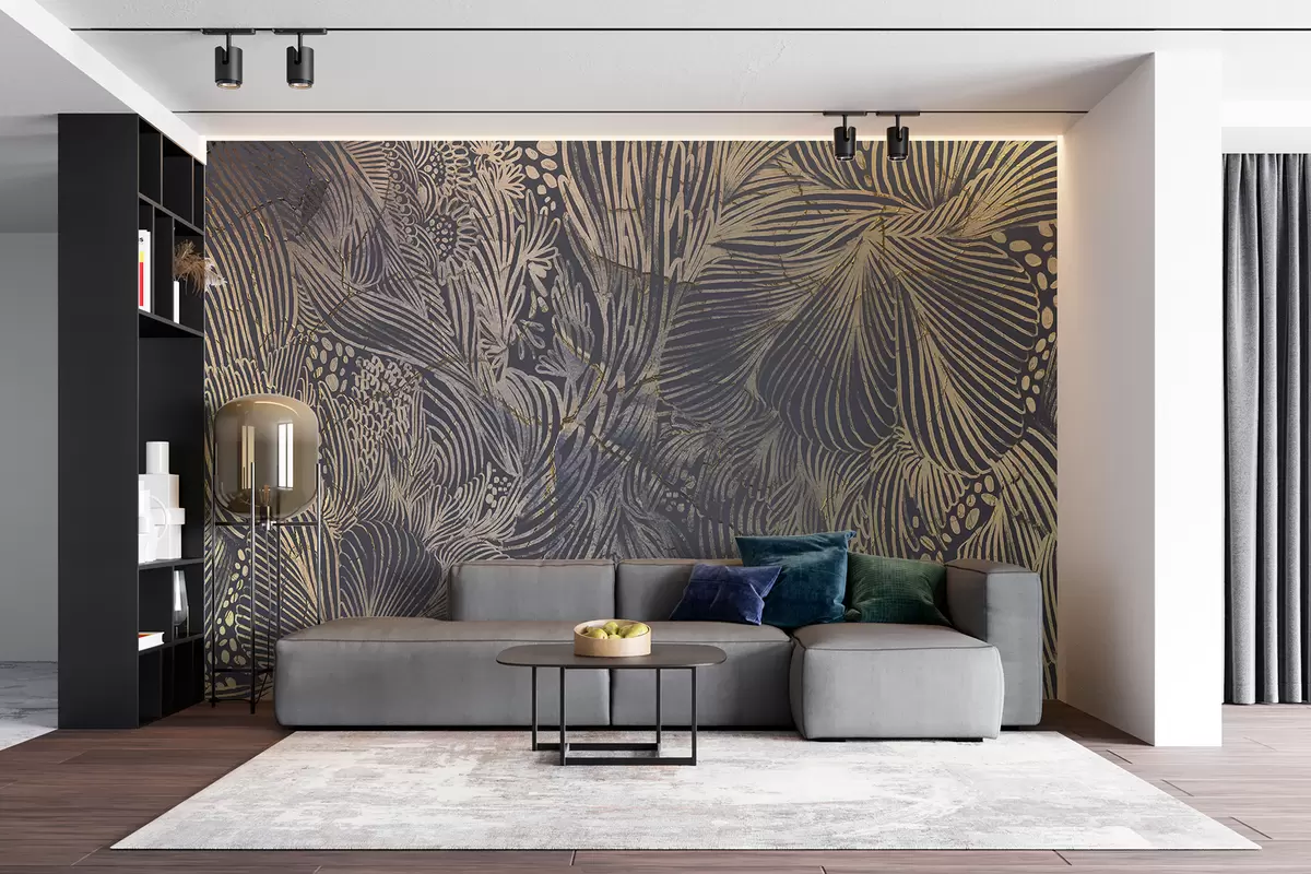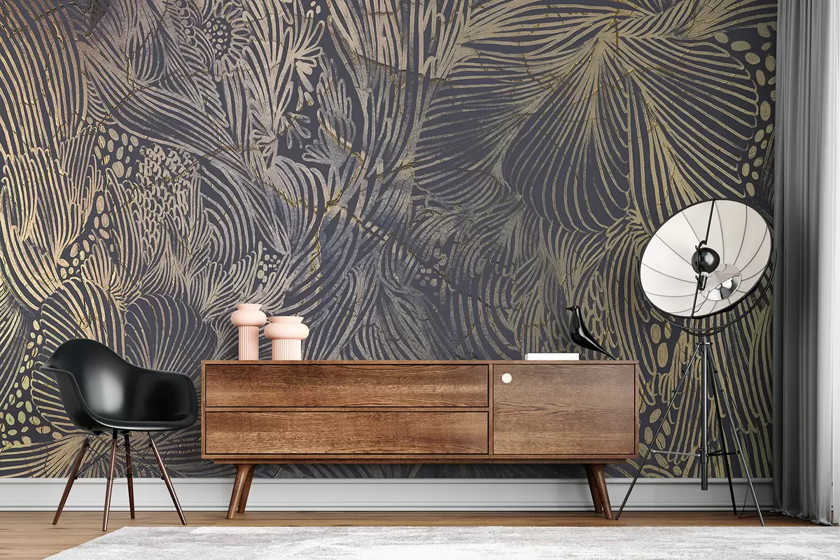 Fototapety Abstraktná textúrovaná luxusná potlač s prekrývajúcimi sa organickými tvarmi a líniami Nr. w01243