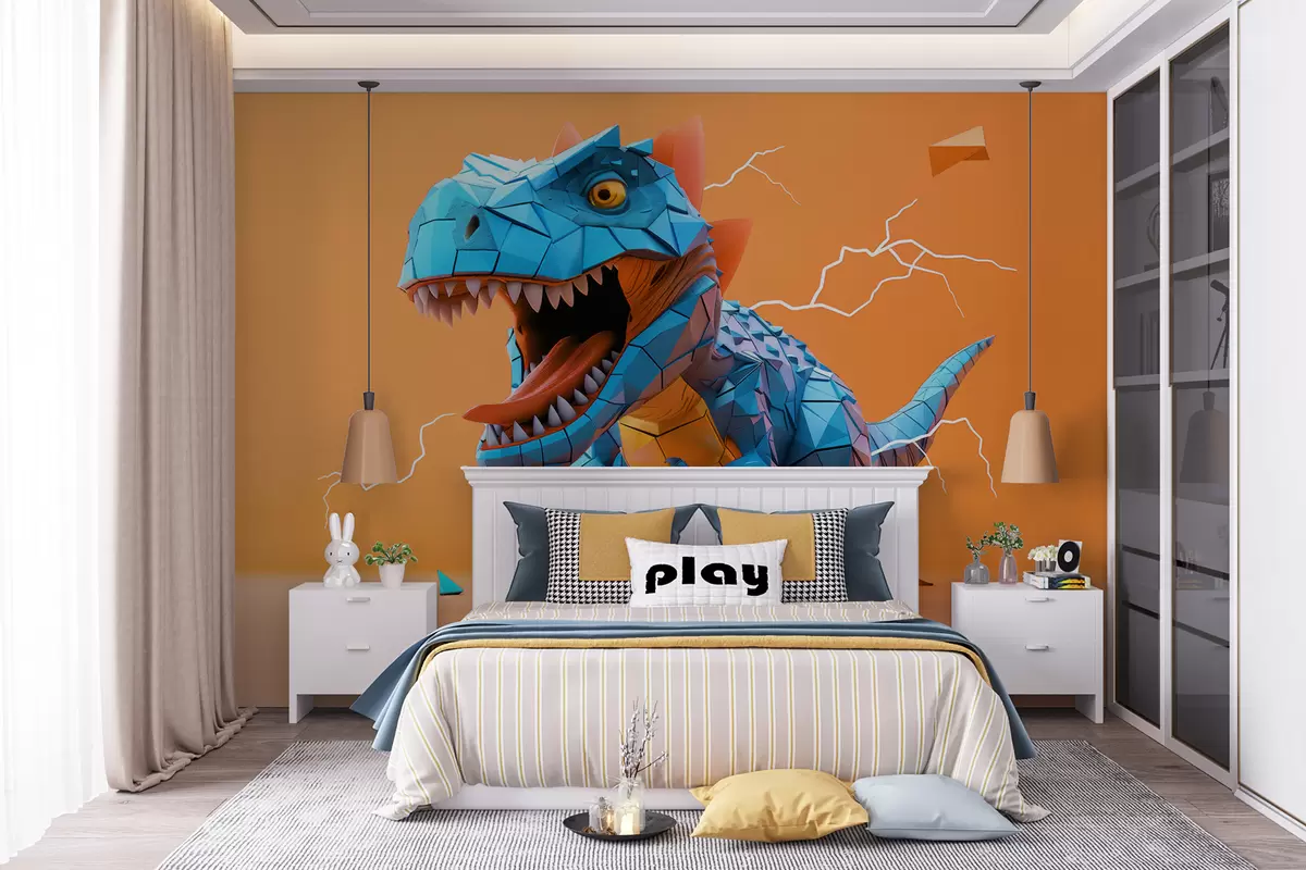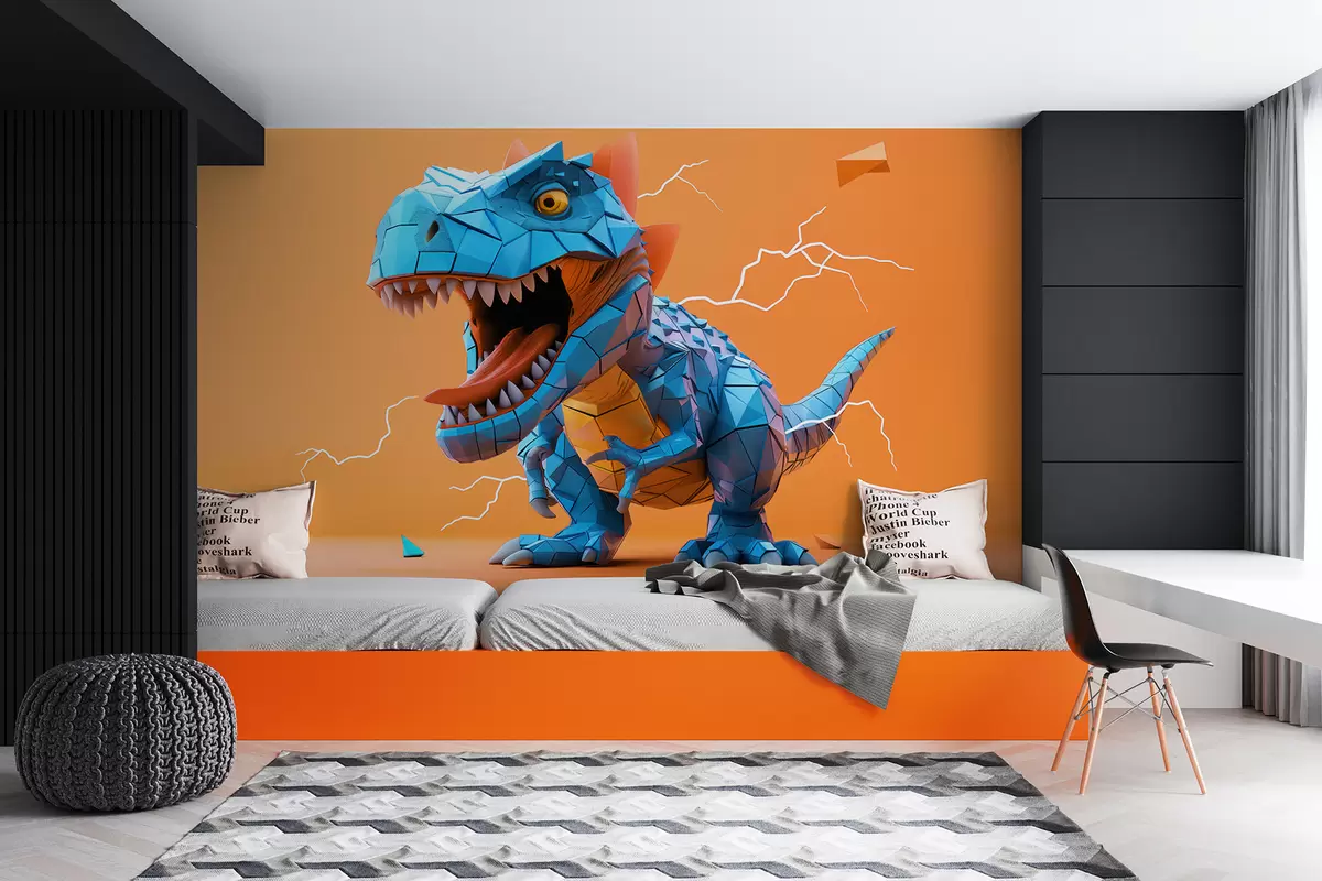 Fototapety Divoký dinosaurus s úderom blesku v žltej a modrej farbe Nr. w01333v1