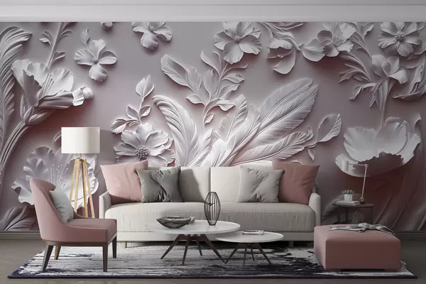 Fototapety Nádherné vyvýšené kvety a listy v ružových tónoch Nr. w01356v1
