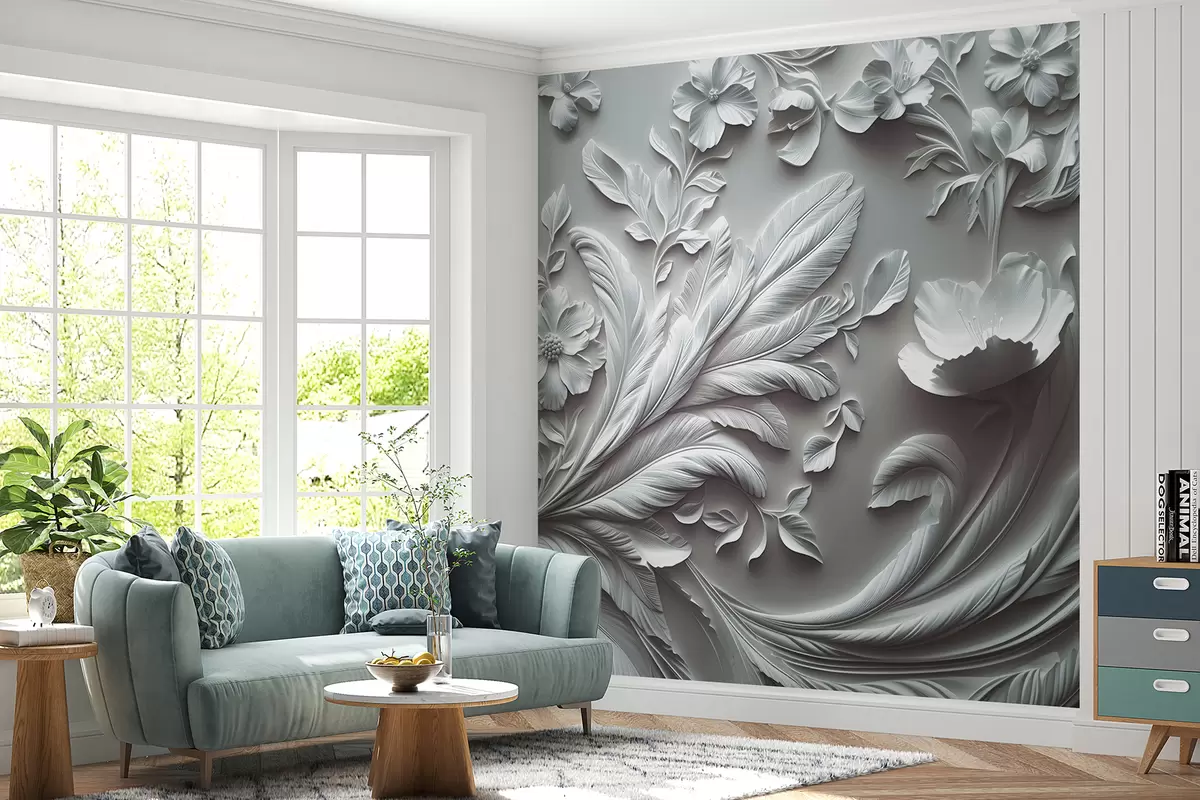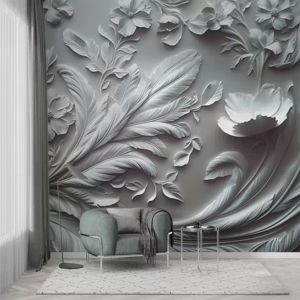 Fototapety Nádherné vyvýšené kvety a listy v šedých tónoch Nr. w01356v2