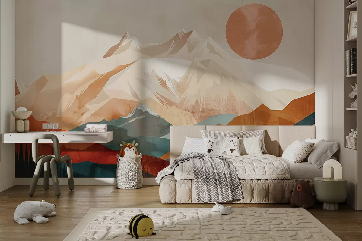 Fototapety Boho blaženosť: pokojná krajina hôr, stromov a slnka Nr. w01358