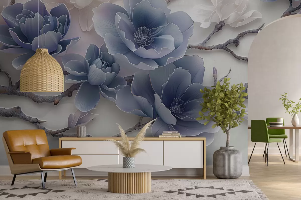 Fototapety Modré reliéfne kvety magnólie na elegantnej vetve Nr. w01359v1