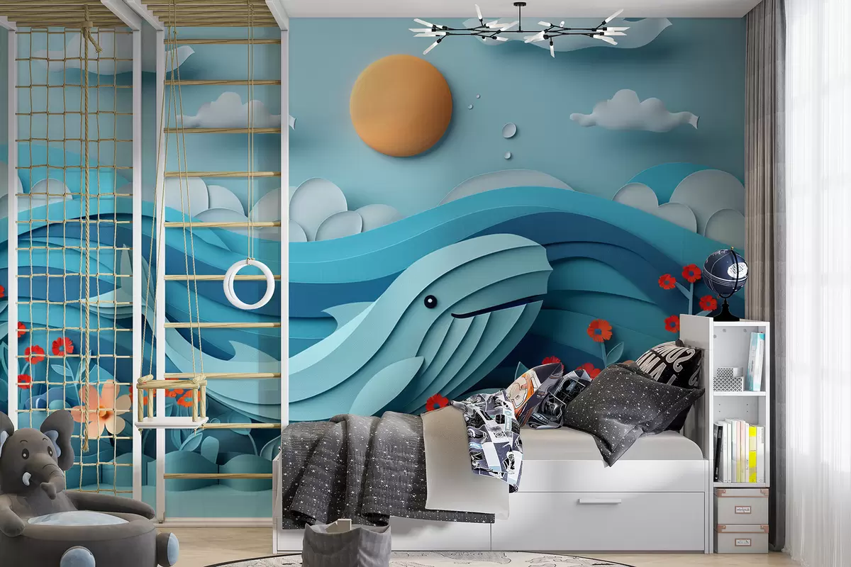 Fototapety Roztomilá veľryba z papiera na modrom pozadí Nr. w01430