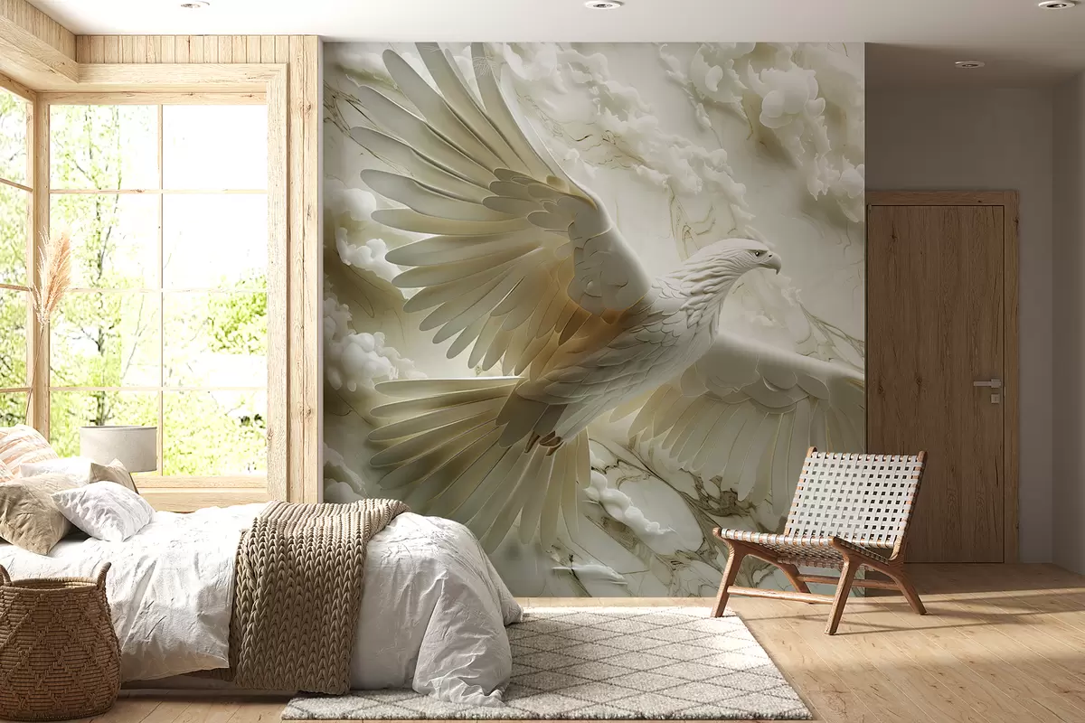 Fototapety 3D biely orol na pozadí mrakov a mramoru Nr. w01477