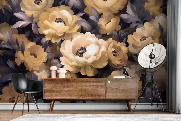 Fototapety Kvetinový štýl olejomaľby založený na béžovej a fialovej farbe Nr. w01581